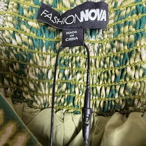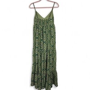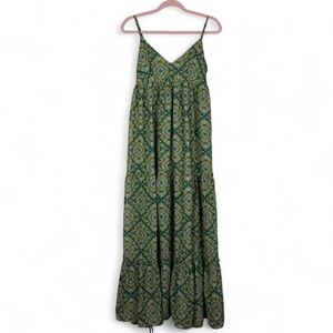 Fashion Nova Camryn Chiffon Flowy Maxi Dress Green Boho Print Size Small