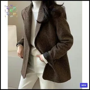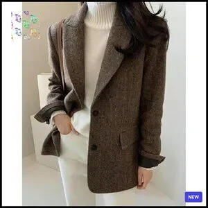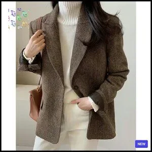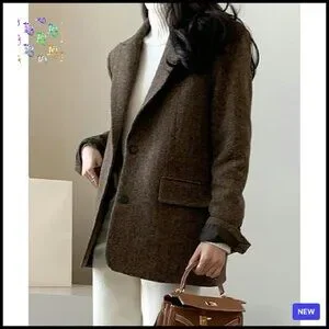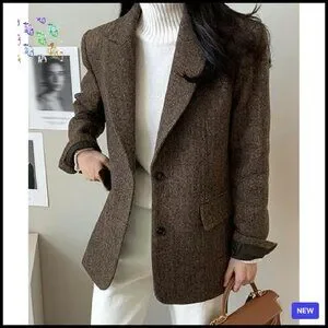 Herringbone Wool Blend Blazer Classic Elegant Work Business Chic Fall Winter