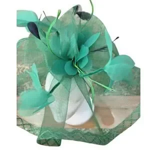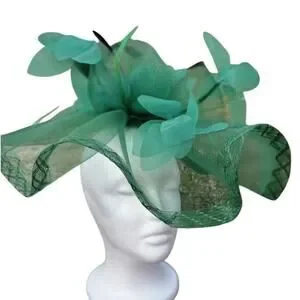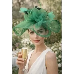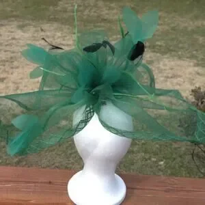 This stunning emerald green fascinator is the ultimate statement piece for race day, weddings, and garden parties. Crafted with sculpted mesh, soft floral accents, and delicate feather details, it creates a bold yet elegant silhouette.