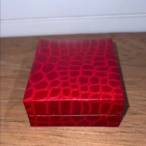 Box doesn’t close properly and stay shut but the earrings and necklace are in perfect new condition and never worn.
