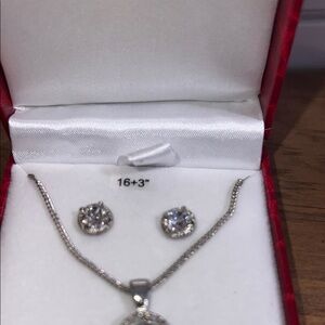 NWOT - Swarovski Silver Necklace and Earrings with Circular Pendant