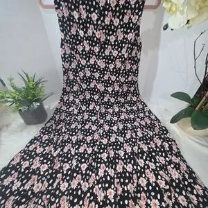 Embrace elegance with this sleeveless floral dress. Featuring a stunning black and pink pattern, it's perfect for any occasion.