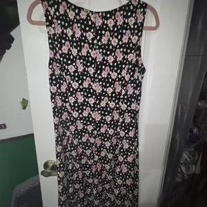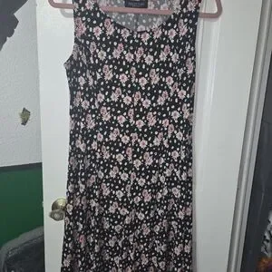 Perception New York VTG Floral Black and Pink Midi Dress. Size L
