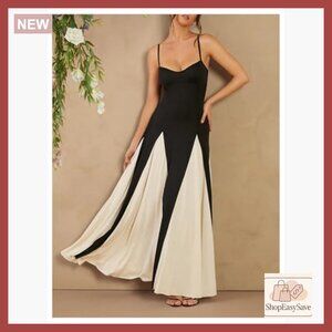 Brand new, never worn, and in flawless condition — this elegant spaghetti strap maxi dress delivers a colorblock, flowy look perfect for formal parties, nights out, holiday events, or chic casual wear. The silhouette is swing-style and incredibly comfortable.