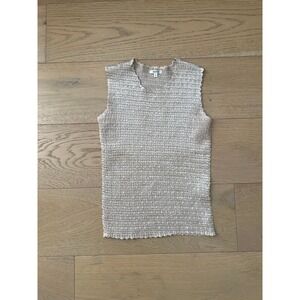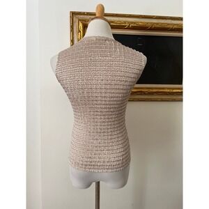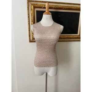 1990's crinkled pleated plisse beige cream polyester sleeveless crew neck top