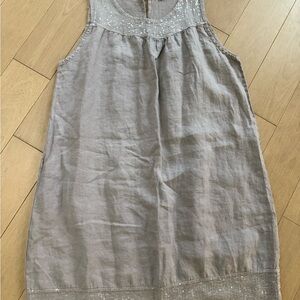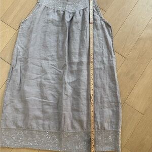 Sequin-Hem Light Gray Linen dress