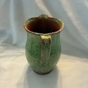 BIG ceramic pitcher rustic or folk art style, speckled green glaze and Red Clay