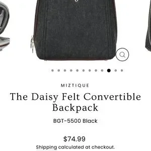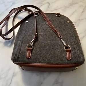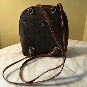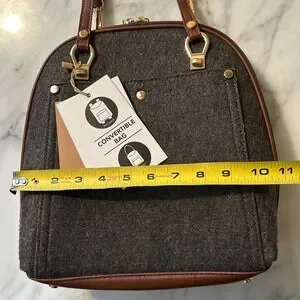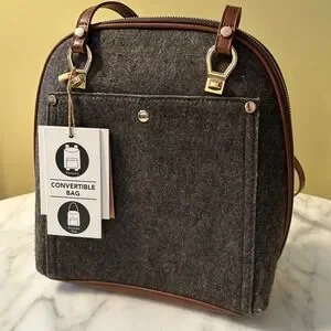 NWT MIZTIQUE The Daisy Felt Convertible Shoulder Bag Backpack Black Brown Vegan Leather Trim Metal Feet