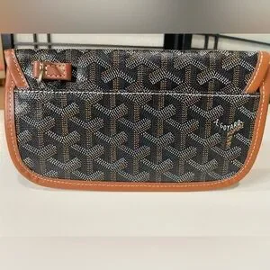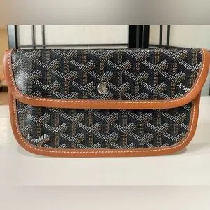 Elegant envelope-style wallet (pouch) with the iconic herringbone pattern in dark brown and black. It's a fashionable accessory, perfect for use as an organizer inside your handbag or as a clutch.