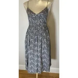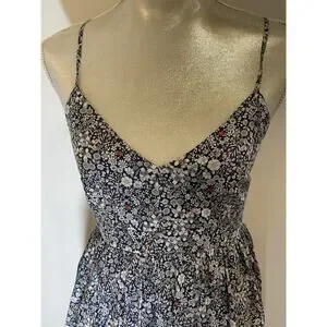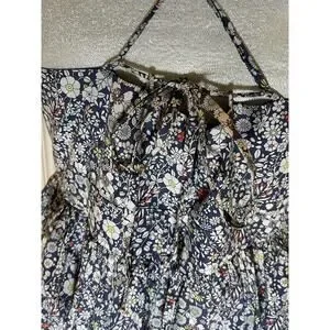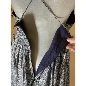 This J Crew Size 4 Sundress in a floral navy, white and red Liberty of London fabric is a stylish and versatile piece perfect for various occasions. Very well-made with lovely details like cross back straps and gathered waist. Made from 100% cotton, this sleeveless dress features a flattering V-neckline and a convenient zip closure. Great midi length appropriate for work, party or vacation mode.