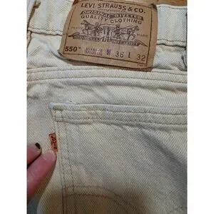 Levis 550 Relaxed Fit Tapered Leg Jeans Mens 36x32 Beige Tan Orange Tab Vintage