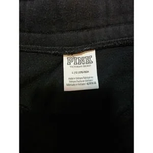 Victorias Secret PINK Joggers Black Fleece Sweatpants White Logo Graphic Large