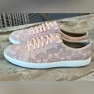 Women’s COLE HAAN Grand OS perforated pink blush leather sneakers-Size 10