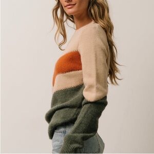 Baltic Born Rowen Color Block Sweater - Natural + Green + Rust - Size Small - NWT