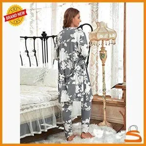Women's Satin Pajama Set with Robe, 3-Piece Sleepwear, Medium