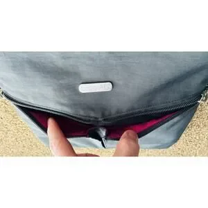 Baggalini Horizon Gray Zippers Pkts Slip Pkt Hot Pink Lining Adj Crossbody. This bag is gray not any other color