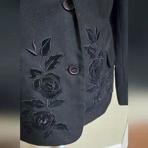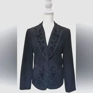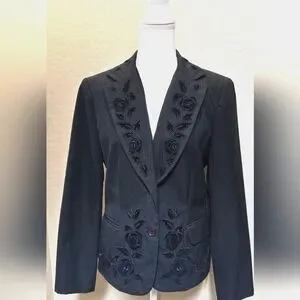Chic Black Blazer w/Velvet Floral Designs. M/10
