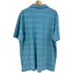 VTG 90s Hudson River XL Blue Striped Short Sleeve Polo Shirt Dadcore Tee