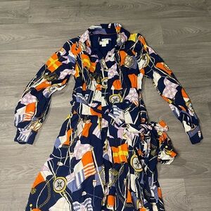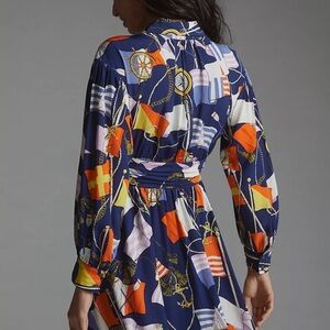 Anthropologie Maeve Shirtdress Buttondown Nautical Navy Sailing Boat Size Small