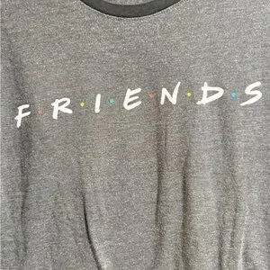 Stylish charcoal tee with iconic FRIENDS logo. Soft and casual.