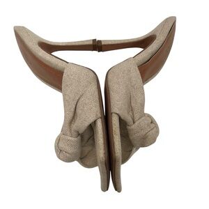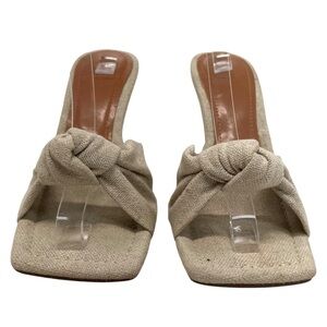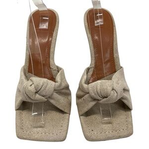 ASOS Design Natural Linen Knot Square Toe Mules Heeled Sandals Women’s 7