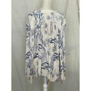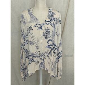 Free People Oversized Metallic Blooms Cream Blue Floral Blouse Size XS