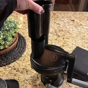 Efficient kitchen tool by The Pampered Chef. Sleek black design. Enhances food preparation.
