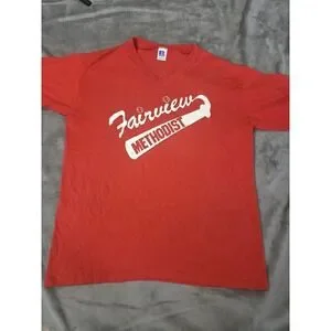 Vintage Russell Athletic Baseball Coach T Shirt Fairview Methodist Large USA