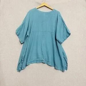 Match Point USA Linen Tunic Top Teal Boho Lagenlook Womens XL Oversized *Flaw