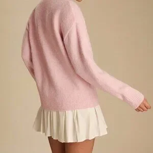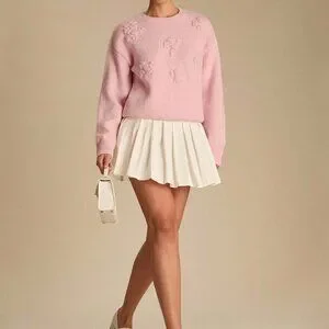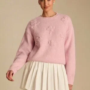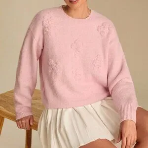 Pink Romantic Women's Pastel 3D Flowers Embroidered Long Sleeve Cute Sweater
