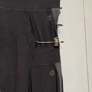 2 pair Green Apple Bamboo Yoga Capri Pants. Both the same style, black with the gray side, both in great condition, no flaws that I can see, though both have been washed. Very comfortable pants.
