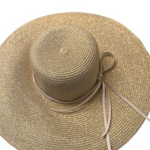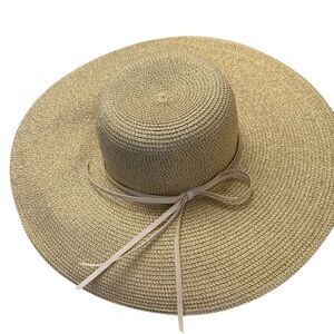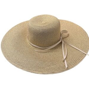 Elegant Tan Wide-Brimmed Sun Hat with Golden Hints