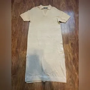 Lightweight Sweater Dress Midi Length In Tan Collar Coastal
