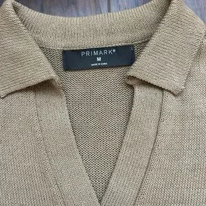 Elegant tan knit dress with a classic collar. Ideal for everyday wear.
