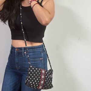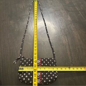 Vera Bradley Petite Provincial Black Crossbody Bag. Stylish Black crossbody with floral pattern. Perfect for adding flair to any outfit. Straps can be tied on the inside to make strap shorter. See pictures for more details.
