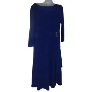 RALPH LAUREN Women's Blue Long Sleeve Boat Neck Dress Size 14 BG13