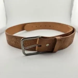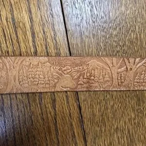 Vintage Western Genuine Leather Tooled Belt Deer Forest Scene Made USA Hunting