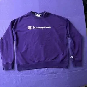 Champion Women’s Royal Purple Crewneck Bold Text Graphic Crewneck Size Medium