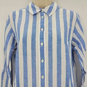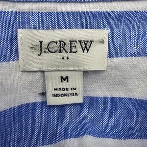 J. Crew Womans size M Linen Cotton Button Up Shirt Blue White Stripe BY037 NEW