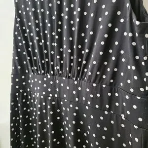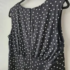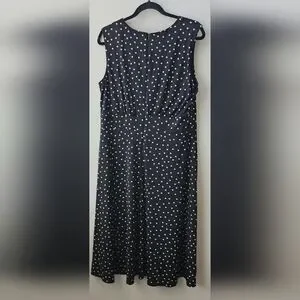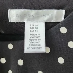 London Times Black & White Polka Dot Midi Dress Stretchy Sz 14 Sleeveless A-line