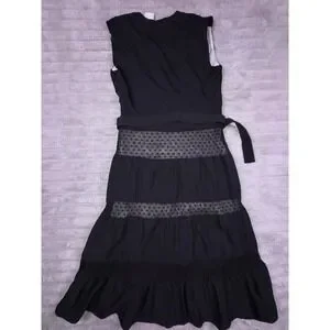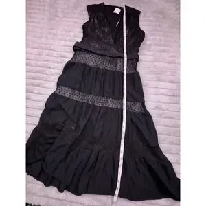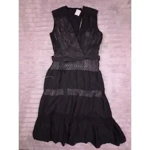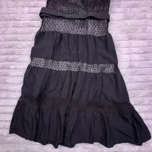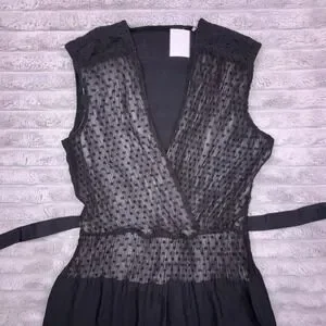 Sandro Paris Women's Small Black Swiss Dot Tiered Ruffle Dress Coquette Luxury