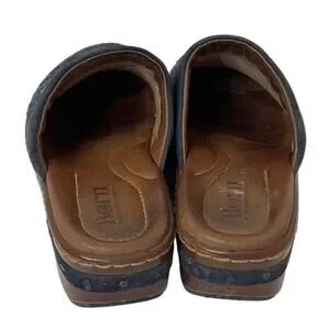 Born clogs, wool clogs, Aztec clogs, comfort slip ons, leather clogs, platform clogs, navy clogs, western clogs, boho shoes, fall shoes, cozy clogs, artisan clogs, everyday comfort, casual slip ons, blue wool shoes, cottagecore shoes, southwest style