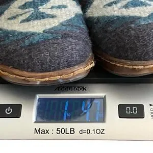 Gently used with visible wear: light scuffing on the leather trim, surface rubbing and natural fiber fuzz on the wool uppers, and a few areas where the exterior stitching shows mild loosening (shown in last two photos). No structural issues, cosmetic only..