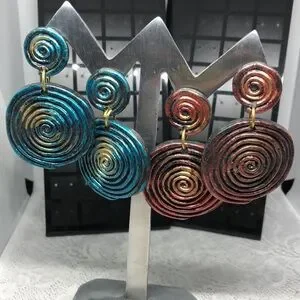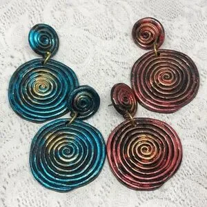 Retro Spiral Swirl Statement Rustic Modernist Abstruct Earrings Dangle Drop Long