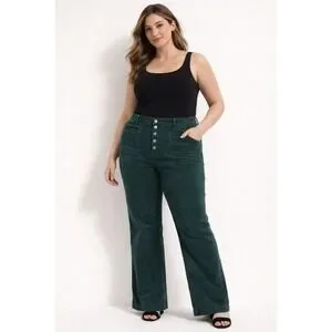 Keywords: corduroy pants, flare jeans, button fly, plus size, stretch fabric, fall fashion, winter wear, casual, everyday, comfortable, stylish, dark green