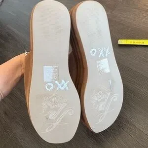 Slide-on mule with wide suede-like upper. Cushioned footbed for comfort. Neutral tan shade pairs easily with outfits. Simple, modern silhouette for everyday wear.