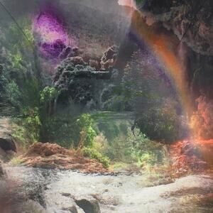 Waterfall, rainbow knit mini skirt.