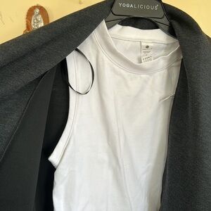 Pit to pit on white inside shirt - 15 in and shoulders to hem is 19