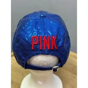 New Era Victoria's Secret PINK Hat Women OS Blue Red Sequin A Logo Strapback