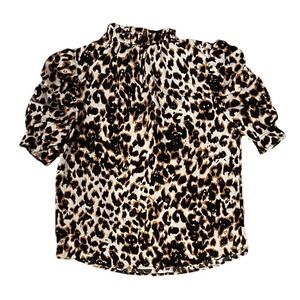THML Boutique Women's Top Size Small Leopard Ruffle Sleeve High Neck